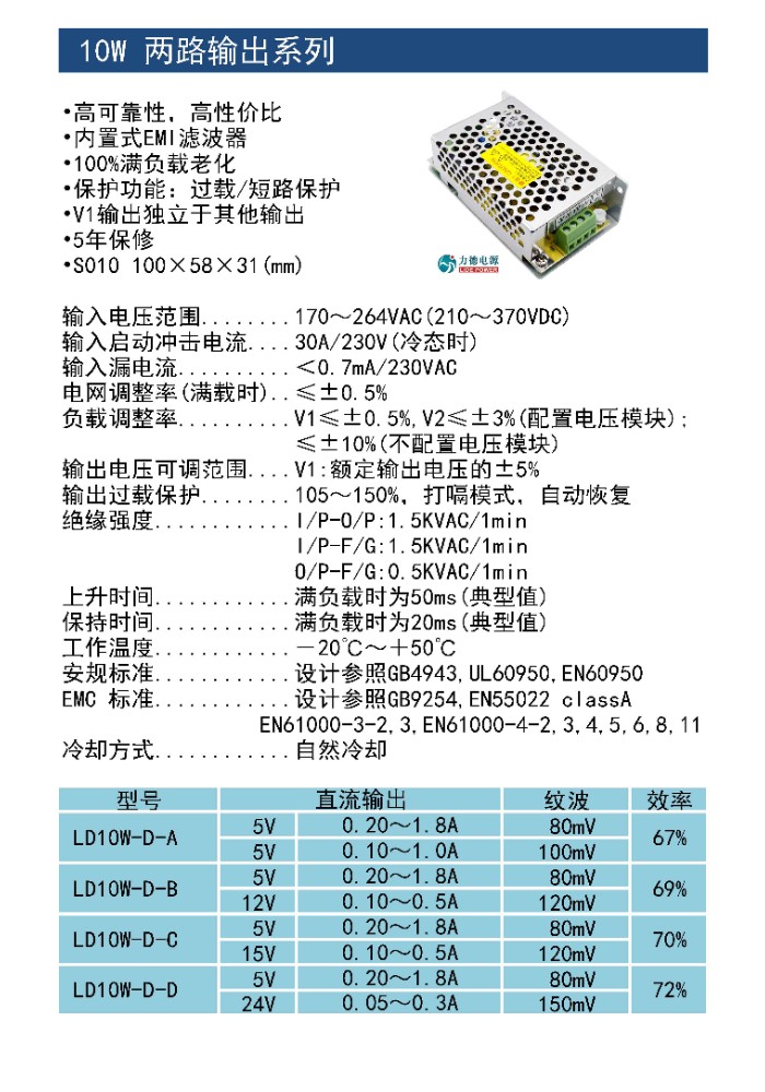 力德10W雙組輸出開關(guān)電源