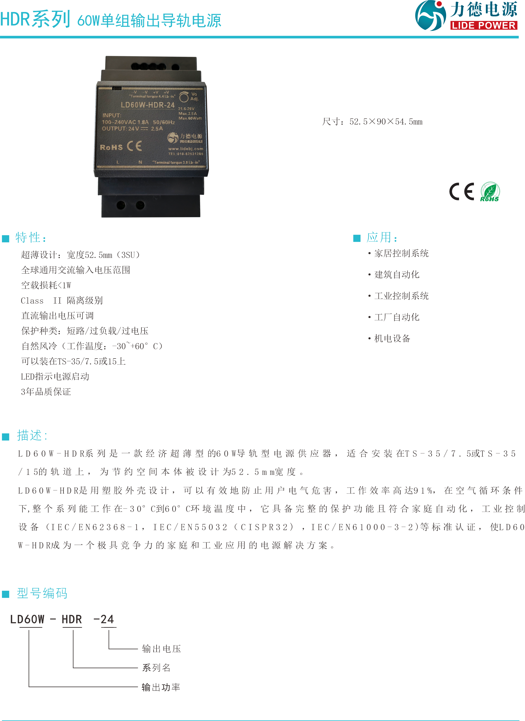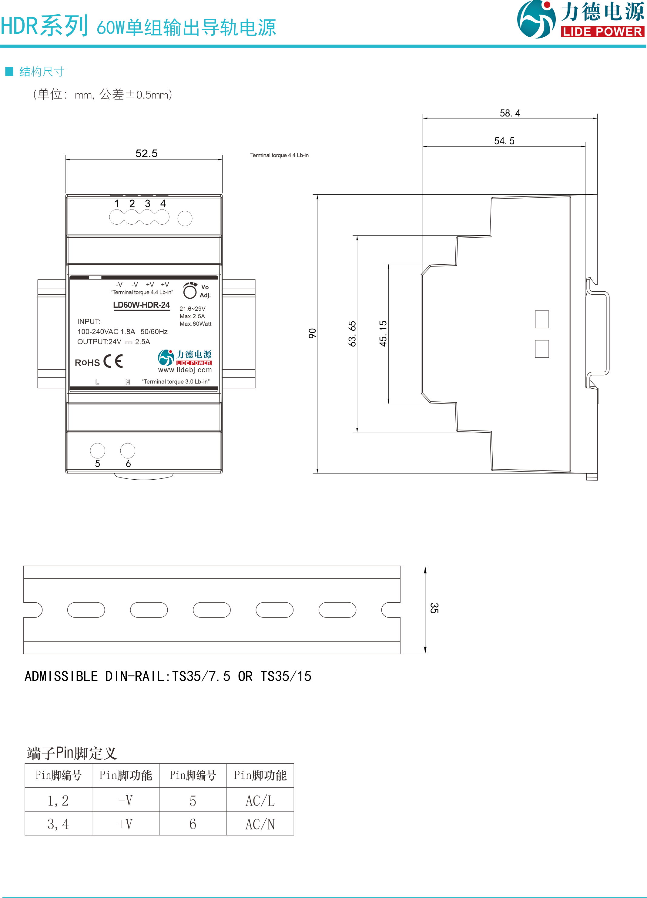 力德60W導(dǎo)軌電源